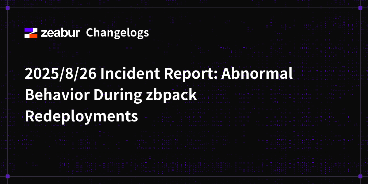 2025/8/26 Incident Report: Abnormal Behavior During zbpack Redeployments