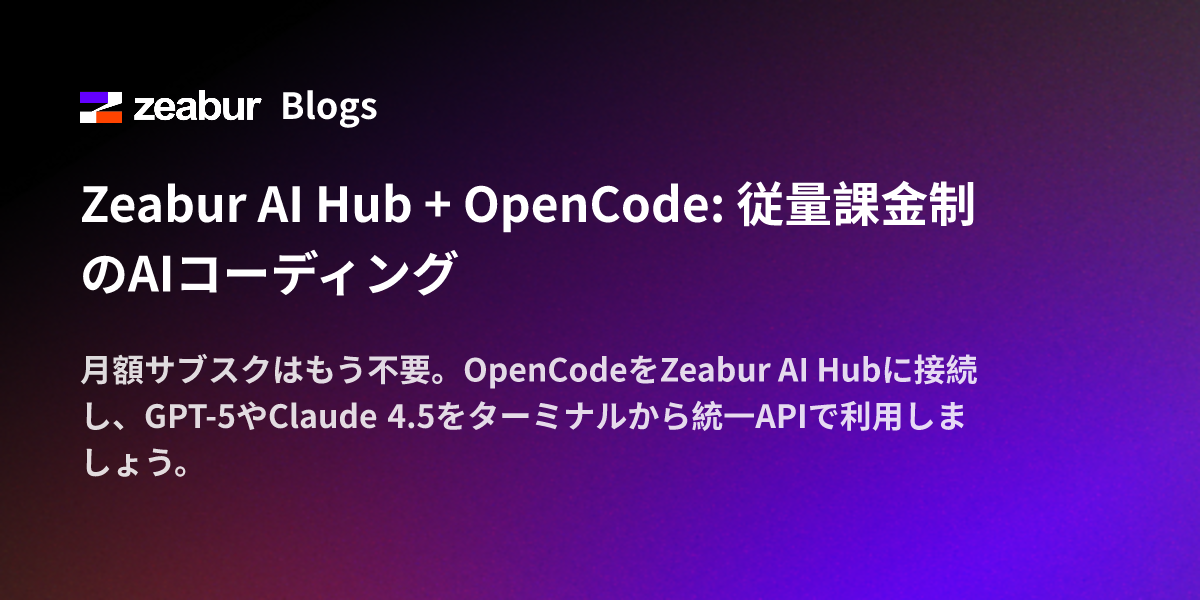 Zeabur AI Hub + OpenCode: 従量課金制のAIコーディング