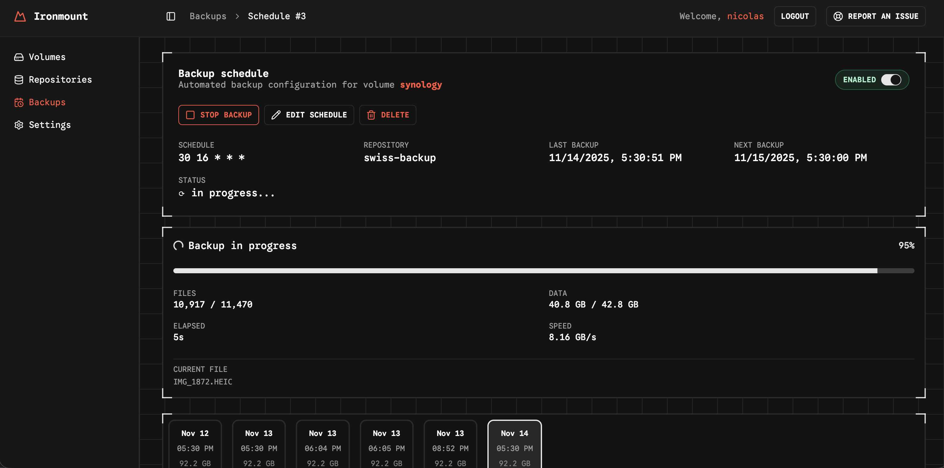Backup automation for self-hosters, built on top of Restic. Schedule, manage, and monitor encrypted backups through a modern web UI.