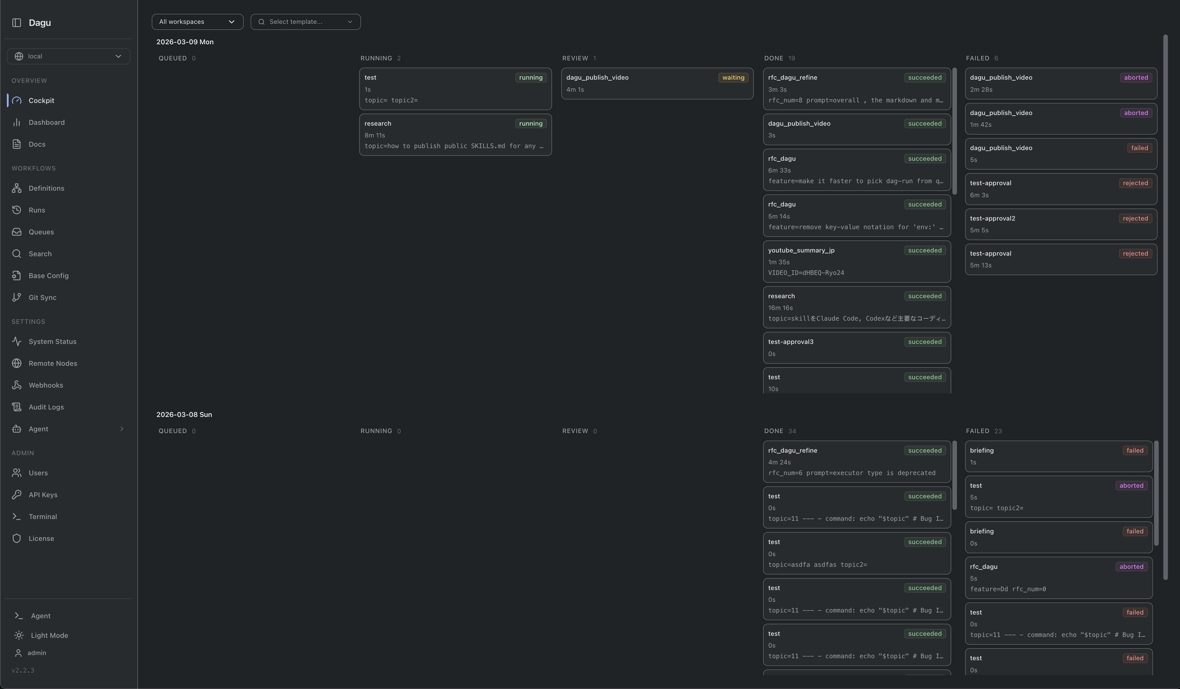 - Create DAG workflows — define jobs and dependencies in simple YAML files